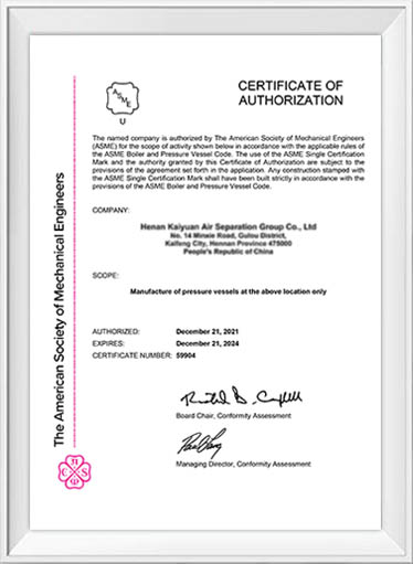 At present, the global epidemic situation is serious, we are going against the current, and we need to be hard on ourselves. The acquisition of the ASME certificate and U stamp not only fully affirms the company's quality control system and manufacturing capabilities, but also encourages Dinak Air Separation to continue to strengthen technological innovation, enhance core competitiveness, and continue to play an exemplary role in the field of air separation manufacturing.