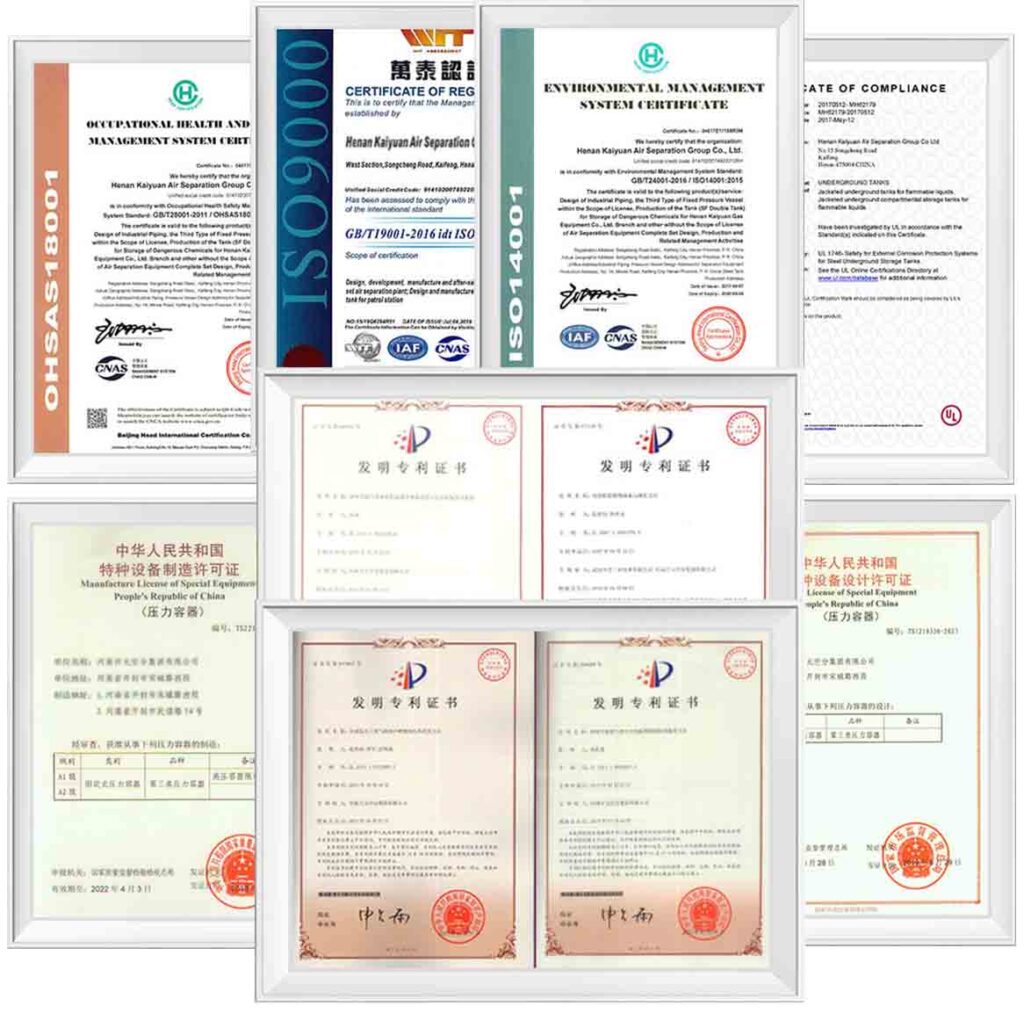 Fundado en el año 2000, Henan Dinak air separation Group cuenta con 22 años de experiencia en la fabricación de sistemas de separación de aire. Gracias a años de arduo trabajo y superación de dificultades mediante su sólida base técnica, ha obtenido más de 40 patentes y derechos de propiedad intelectual propios, incluyendo licencias de fabricación de recipientes a presión de nivel A1 y A2, así como licencias de diseño e instalación de tuberías a presión de niveles GC1, GC2 y GC3. Además, posee las certificaciones ISO 9001, GB/T 28001 y GB/T 24001, y la certificación UL de EUA.Asimismo, cuenta con la capacidad técnica para diseñar, fabricar e instalar unidades de separación de aire de clase 80.000 y 100.000.